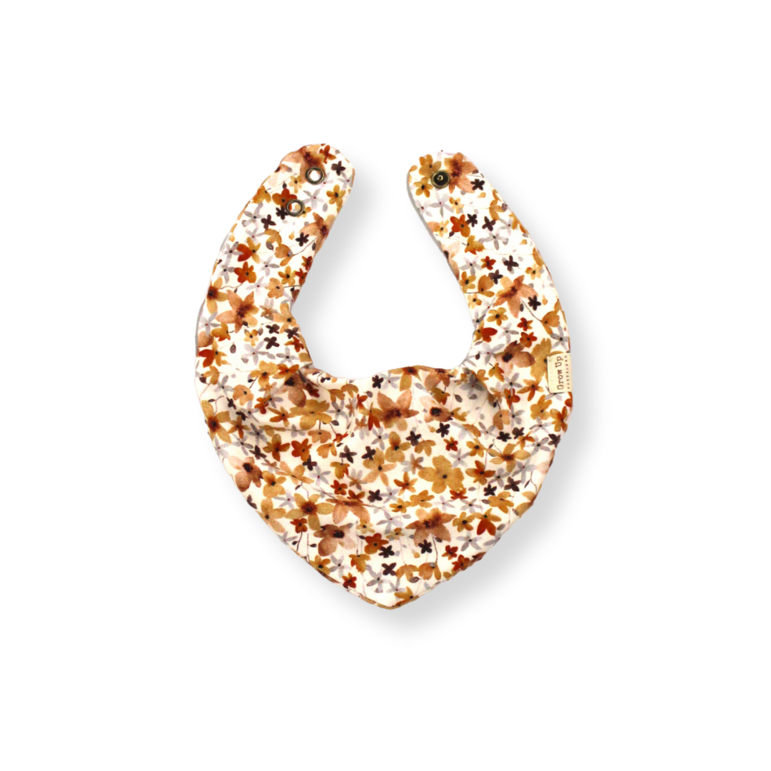 Soft and comfy bandana bib with delicate spring pattern. Adjustable size.